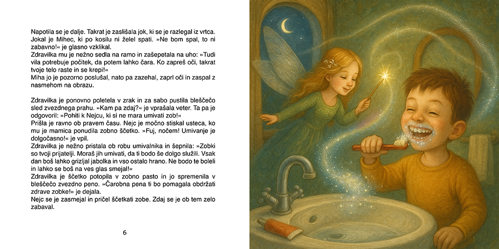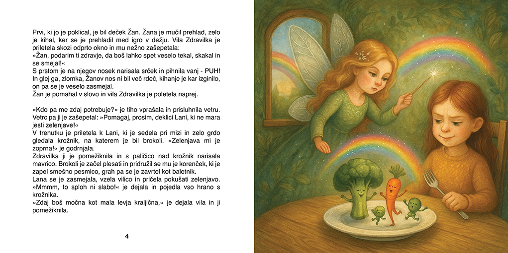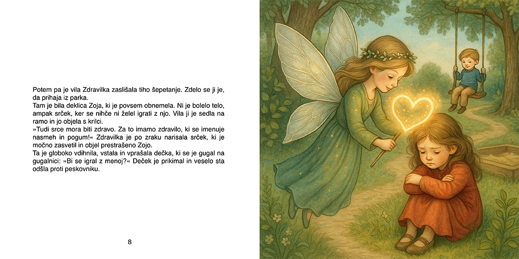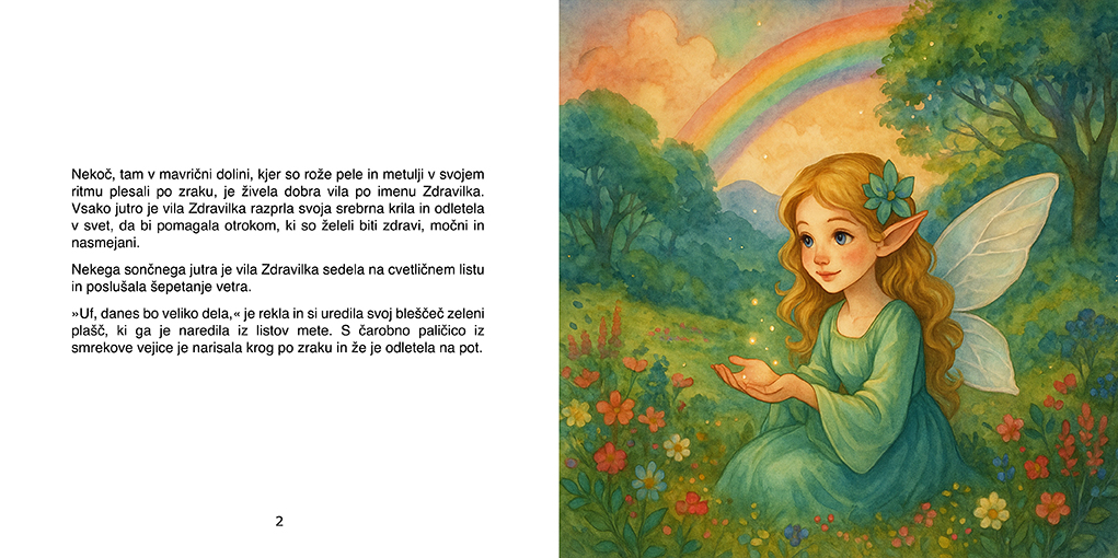 Ali veš, da nekje daleč stran, za sedmimi griči in mavričnim gozdom, živi prav posebna vila? Ne, nikakor ni čisto navadna. Ne dela čarovnij s čokolado ali zvezdami, ampak, ne boste verjeli, podarja zdravje! Ime ji je Zdravilka in vsak dan podarja nasmeh tistim otrokom, ki ga najbolj potrebujejo.