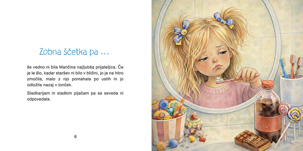 Zgodba spremlja deklico Manco, ki skozi dogodivščine v deželi Usta spozna, da ima zobna ščetka pravzaprav zelo pomembno vlogo. In da se z njo ne splača prepirati – še posebej, ko v bližini prežijo obloge, bakterije in gospod Karies s kladivcem v roki.