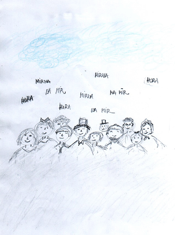 Vaščani so bili od veselja tako navdušeni, da so vzklikali NA MIR, NA MIR, NA MIR …